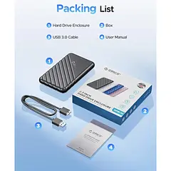 - Contenido de la caja: 1 carcasa para disco duro de 2,5 pulgadas, 1 cable micro B a USB 3.0 de 0,7 metros, 1 manual de instrucciones